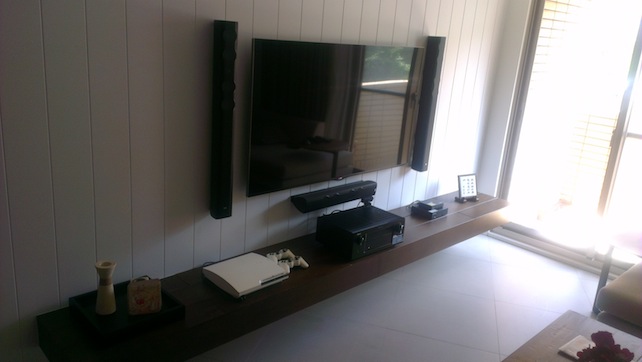 以上圖照片為例,客廳主牆為家庭娛樂生活重心,其中牽扯的電器迴路就有電源、音源、影像、網路…等複雜因素,許多業主事後突發的電器購買,這多出的需求,往往是裝修糾紛主因。