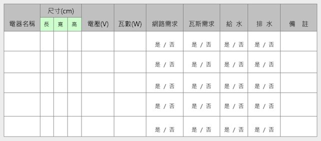 另外也建議裝修前,業主應開列所有家電設備表格,詳列尺寸、用電、給排水或網路等需求,而設計師也應協助業主開列規格表,建立彼此的共識。如此勢必可將用電糾紛降至最低。