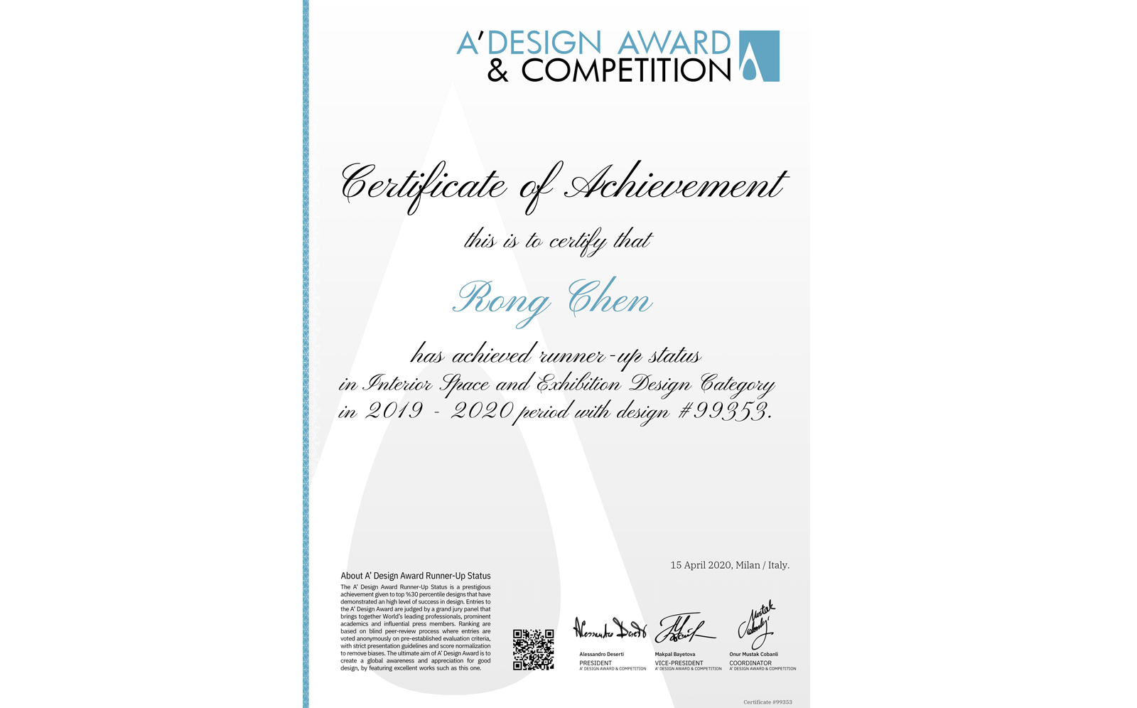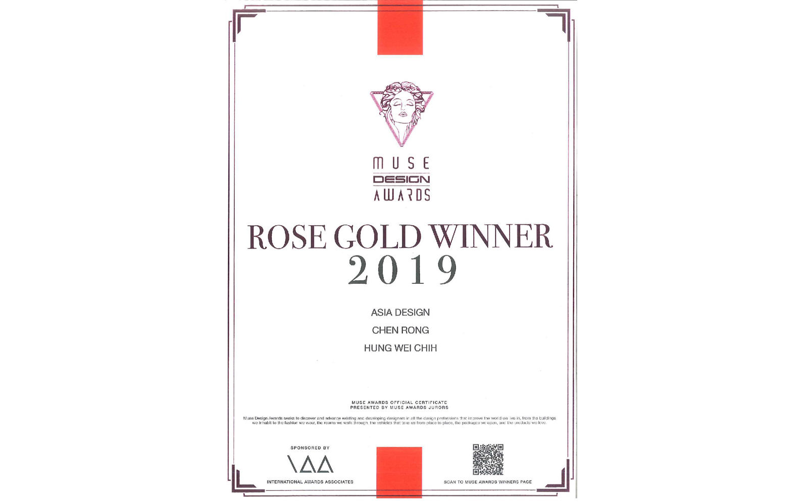 2019 MUSE DESIGN AWARDS得獎證書玫瑰金獎